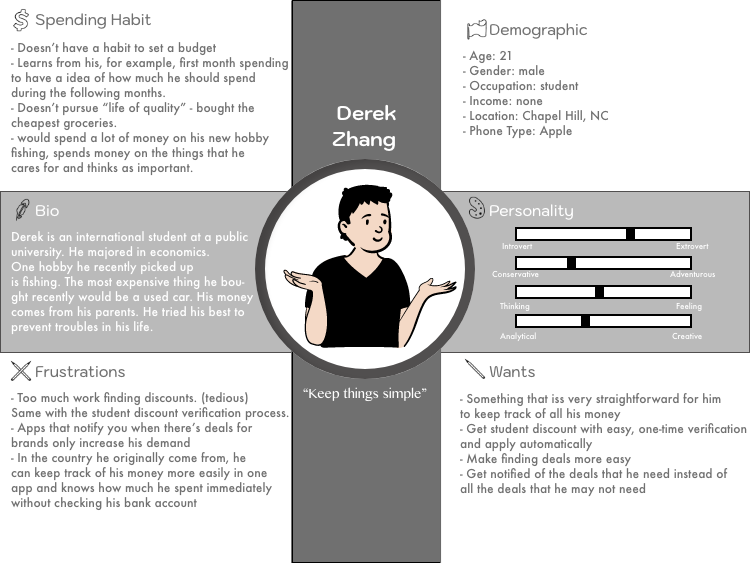 Then I created 5 different personas that are completely different from each other to understand different users and their needs in terms of saving money.