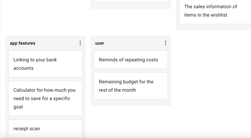 The first step of starting the design is to know the basic functions and content hierarchy of my app. I listed assets I wanted to include in my app and asked my peers to do card sorting for me. This helped me understand what’s the most intuitive way for my users to find the functions under categories. And based on the feedback I have my initial hierarchy.