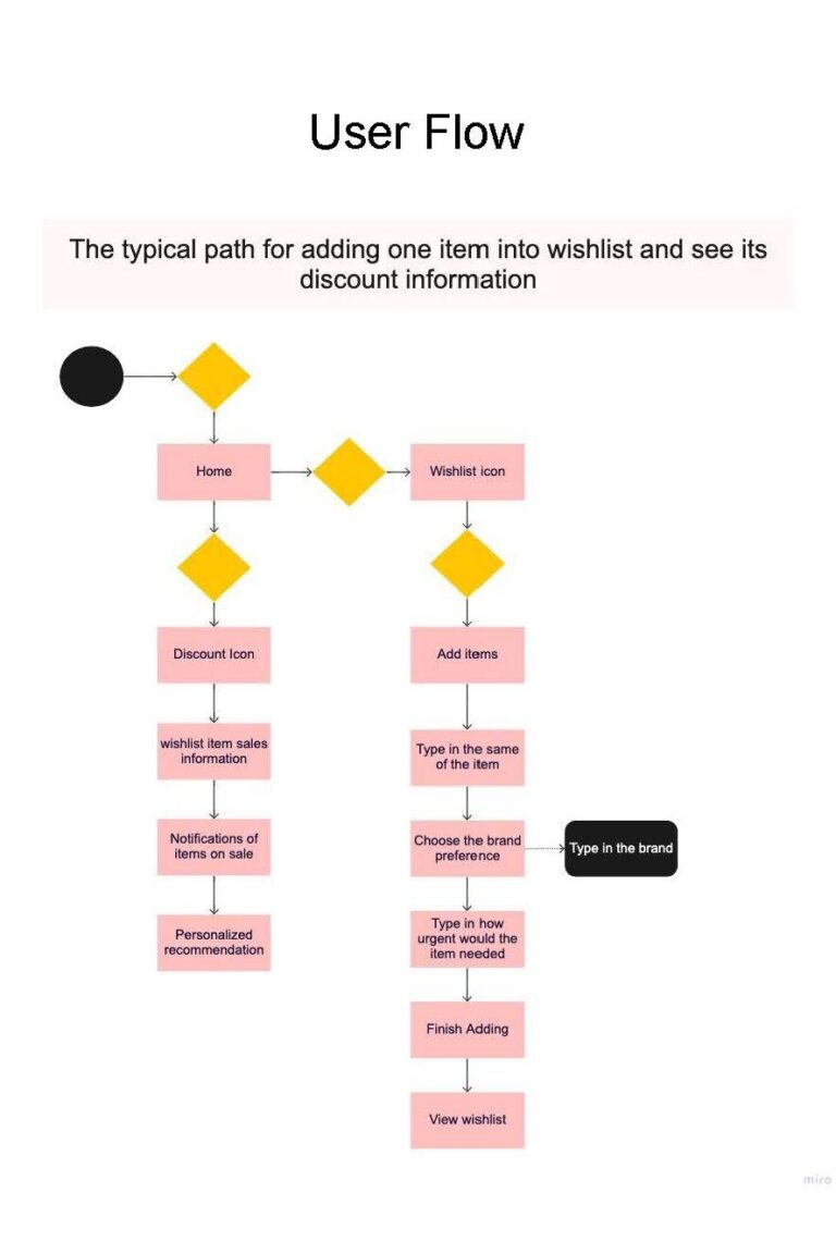 Then I created user flows to visualize how users would navigate through the pages within the app and this further inspired some further modifications to my original hierarchy when designing the app.